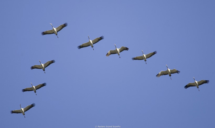Многие наверняка видели осенью утиный косяк или группу журавлей, летящих клином. Интересно, что эти птицы выстраиваются в такой форме, даже если их всего 4-5 штук и они еще не объединились в общую группу. Такой способ перелета предпочитают крупные птицы, такие как гуси, утки, журавли, цапли, пеликаны и другие, в то время как мелкие пташки чаще всего летают хаотичными группами. Ну а крупные хищные птицы не нуждаются в компании и предпочитают путешествовать в одиночестве.