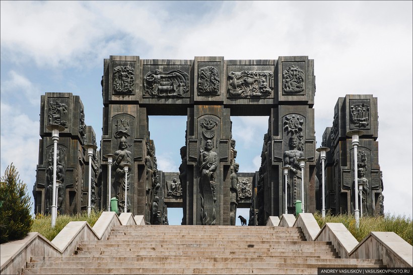 Тбилисское море и монумент «История Грузии». История Грузии — это внушительнейшее произведение кого бы вы думали? Ну конечно же, Зураба Церетели. 16 колонн, каждая по 35 метров, а изображены на них все вехи становления Грузинского государства. Выглядит впечатляюще.
