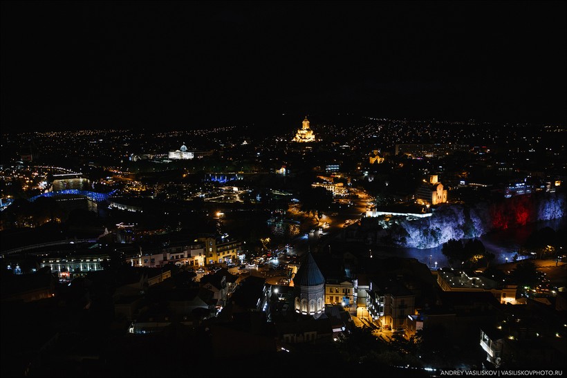 И вновь поднимаемся на Нарикалу, но теперь уже в вечернее время. Горящий Тбилиси прекрасен, и этим видом можно любоваться чуть ли не бесконечно.