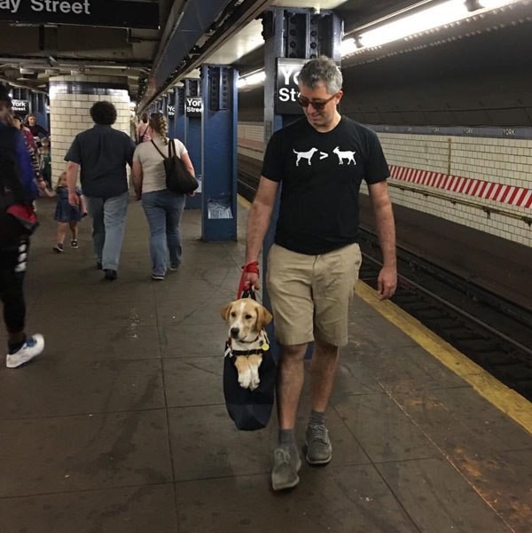 Кот в мешке, ой, нет, собака в сумке — именно так теперь живут в Нью-Йорке любители четвероногих. Дело в том, что не так давно в метро запретили провозить всех собак, за исключением тех, кто сидит в переноске. Ну а как же быть хозяевам больших питомцев, если в переноску их любимцы не влезают? Ньюйоркцы были очень возмущены новым законом, однако вскоре нашли выход: посадить собаку в сумку. Правда, учитывая размеры некоторых собак, иногда перевозка животного принимает какие-то гротескные формы. Да и соцсети пестрят забавными фотографиями: кажется, что ньюйоркцы выдрессировали своих питомцев, чтобы даже самые большие собаки могли поместиться в сумку.