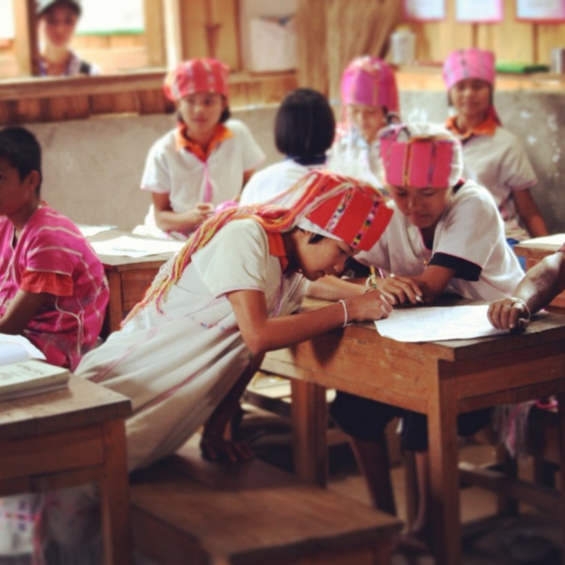 «Дети горного племени Чиангмая (Chiang Mai), что в Таиланде изучают в школе себя. Это группа из 60-ти человек, которые представляют собой особое племя. Нас привели сюда, чтобы обучаться. По сути это обычная Западная школа, но преподается двумя самыми образованными взрослыми из поселка. Они набирают класс, где обучают всему, что может пригодиться в жизни, а также песням, танцам и искусству приготовления еды. Самый важный урок, который вы не купите в колледже – это познание себя!».