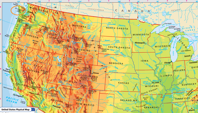 По этой причине абсолютные высоты на картах, изданных в разных странах, могут отличаться на несколько метров. Так, например, на физической карте Соединенных Штатов Америки, можно заметить разницу в 5 метров в русскоязычной версии и в англоязычной. Высота горы Олимпус составляет 2 429 метров, а на российских картах эта цифра составляет 2 424 метра. То же относится и к другим вершинам на территории США.