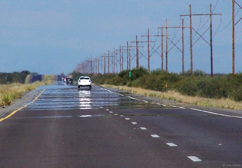 Самые распространенные — это нижние миражи. Именно они сводили с ума измученных жаждой путешественников. Нижние миражи возникают там, где поверхность земли сильно перегрета, например, в той же пустыне или над асфальтированной трассой. Нижние слои атмосферного воздуха также нагреваются от этой раскаленной поверхности, и возникает резкий перепад температур между нижними слоями воздуха и верхними. В результате этого возникает преломление потоков света: луч отклоняется от горячего слоя к более холодному верхнему слою, а затем обратно от следующего слоя вниз. В результате этих преломлений мы видим отражение участков неба в атмосфере на фоне земли, которые принимают вид небольших озер или луж на поверхности асфальта.