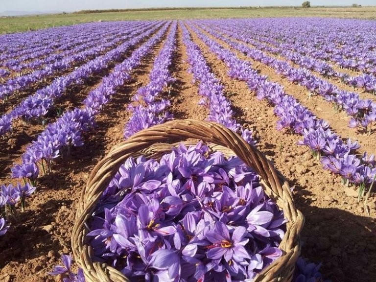 Сегодня основным экспортером на мировой рынок самой дорогой пряности на планете является Иран. Именно в этой стране производят до 90% всего шафрана в мире. Шафран выращивают на полях, высаживая рядами небольшие луковицы, из которых осенью появляются лиловые цветы. Каждый цветок образует всего три рыльца, а сложность заключается в том, что сорвать их нужно именно в день раскрытия цветка, до того, как они начнут вянуть. Поскольку не все цветы распускаются одновременно, то сбор рыльцев производится в несколько этапов и только вручную. Ежедневно обходя плантацию, рабочие срывают только что раскрывшиеся бутоны и отрывают от них драгоценные рыльца. Собранные рыльца раскладывают для просушки под солнцем.