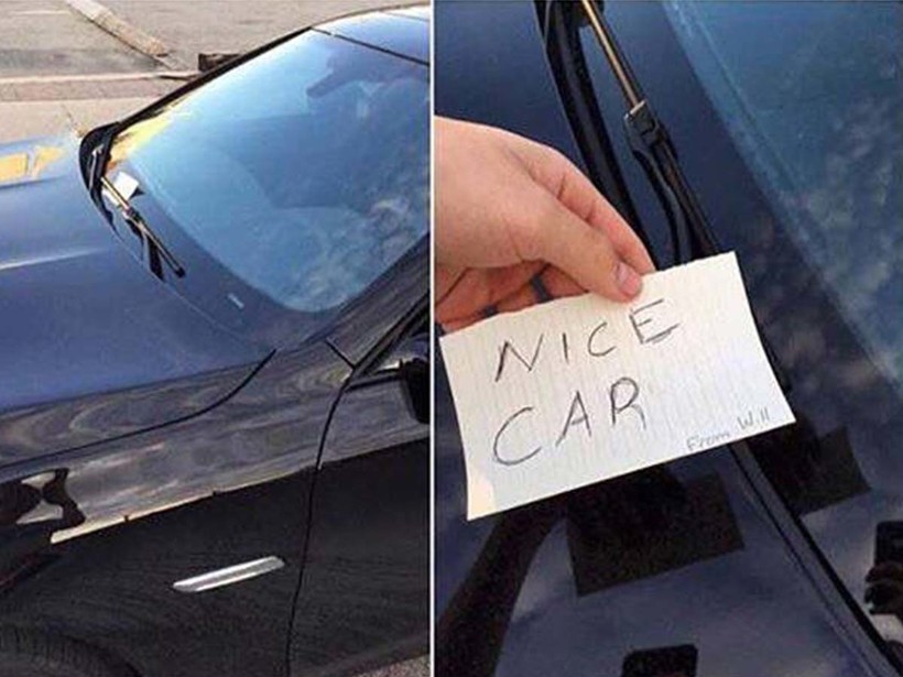 Если вы увидите оставленную на вашей машине бумажку, не спешите расстраиваться, думая, что получили штраф. Вспомните, что вы в Канаде, возможно кто-то просто сделал вам комплимент (Надпись на записке: «Красивая машина»).