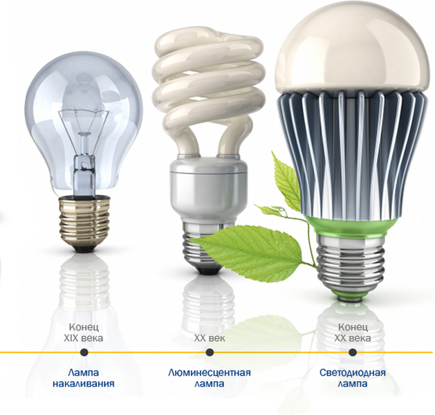 Светодиодные лампы — еще одна разновидность энергоэффективных ламп. В отличие от люминесцентных, этот тип ламп абсолютно безопасен и не представляет угрозы в случае разрушения колбы. Источником света в этих моделях служит светодиод — полупроводниковый прибор, который создает оптическое излучение под воздействием электрического тока.