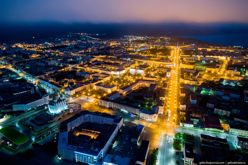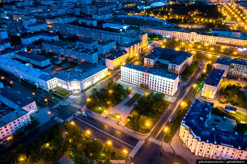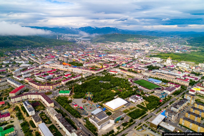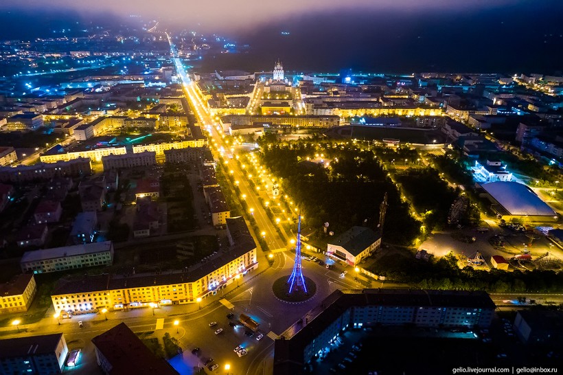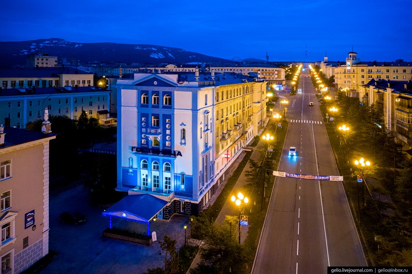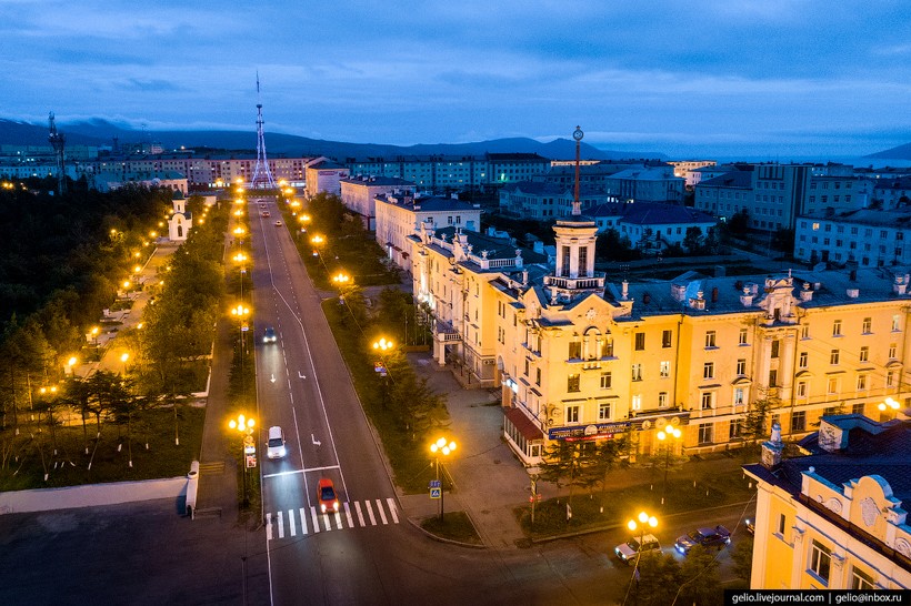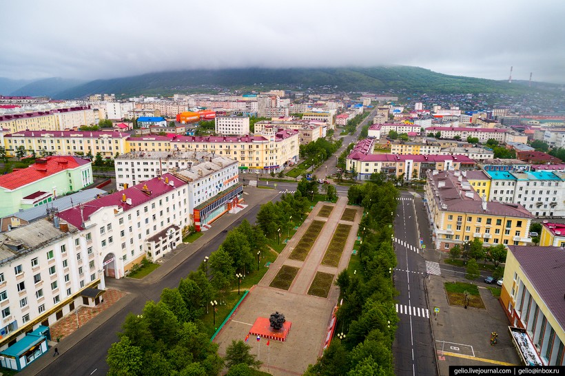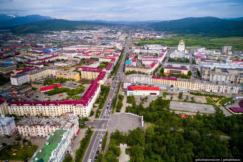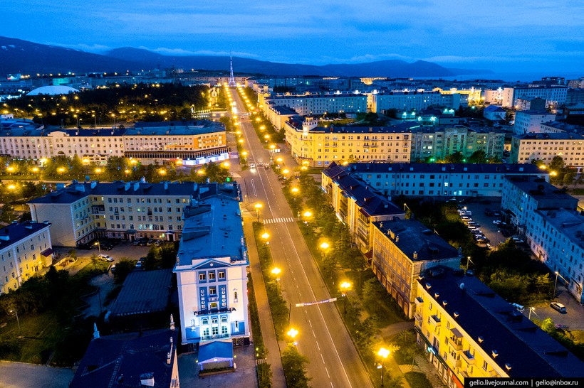 Проспект Ленина — главная улица города. Она пересекает весь город с юга на север и замыкается сопками. Проспект озеленен лиственницами, высаженными еще в 1954 году.