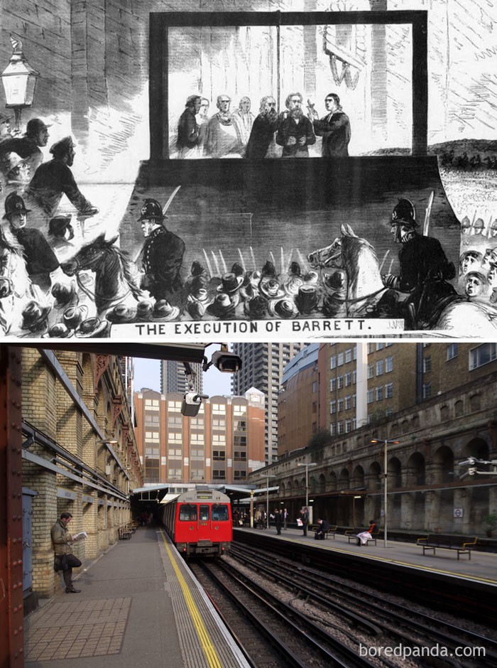 Вы могли бы воспользоваться лондонским метро, чтобы приехать на последнюю публичную казнь через повешение в Великобритании в 1868 году.