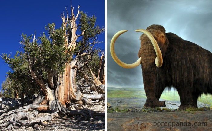 Самому старому из живых ныне деревьев, сосне Бристлекон, было 1000 лет, когда умер последний мамонт.