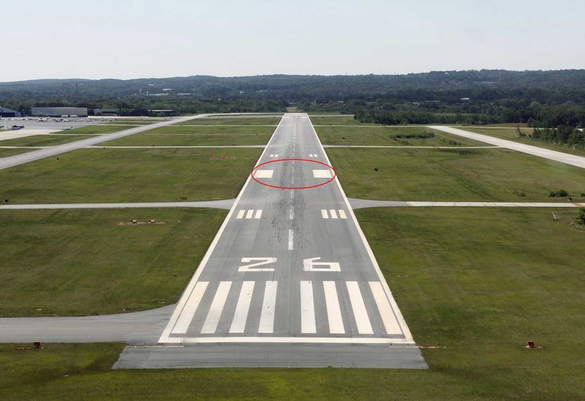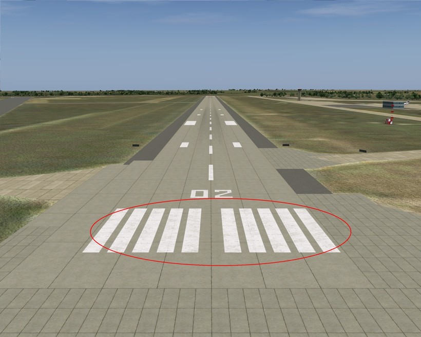 На каждой ВПП также можно увидеть маркер прицельной точки посадки, который позволяет пилотам сориентироваться относительно места посадки воздушного судна.