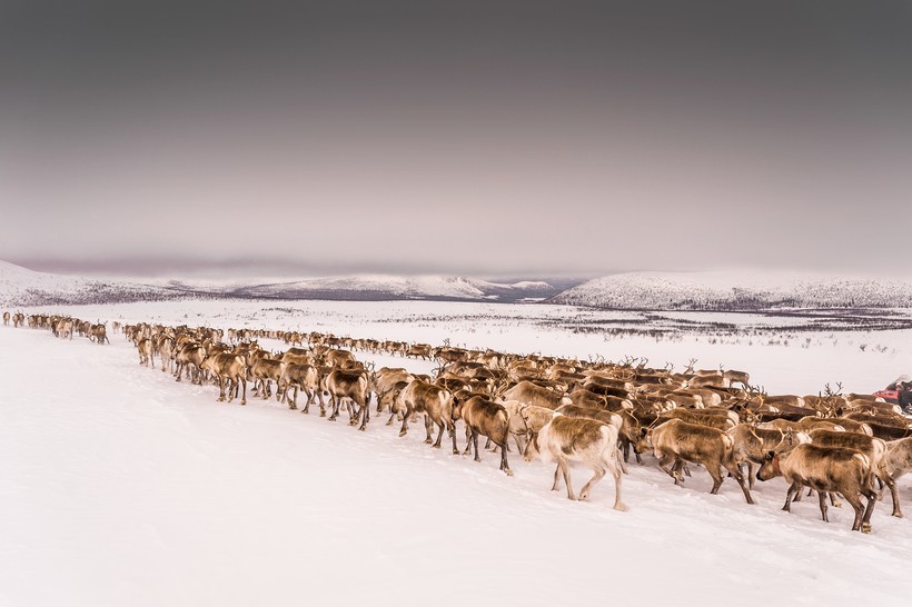 Еще одна особенность дикого северного оленя как биологического вида — это его образ жизни. Ни одни другие олени не образуют таких огромных стад, как северные олени. Собираясь в большие группы, олени мигрируют на большие расстояния в поисках новых пастбищ, а также совершают сезонные миграции, кочуя с севера на юг осенью и обратно в тундру весной.