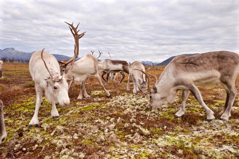 Вопреки распространенному мнению, северные олени — это не исключительно травоядные животные. Конечно, основной их корм — это травы и ягель, несколько видов лишайников, распространенных в тундре. Ягелем олени питаются в основном зимой, когда ничего другого просто нет, а летом их рацион пополняется травами, грибами и кустарниками. Но самое удивительное, это то, что северные олени с удовольствием поедают пищу животного происхождения. Они подбирают выброшенную на побережье рыбу, могут съесть попавшиеся им яйца птиц или даже самих птенцов, а также едят полевок и леммингов — мелких грызунов, которые в изобилии водятся в тундре. По мнению исследователей, это связано с тем, что скудная тундровая растительность не в состоянии удовлетворить потребности этих крупных животных в основных питательных элементах и им приходится нарушать вегетарианскую диету.
