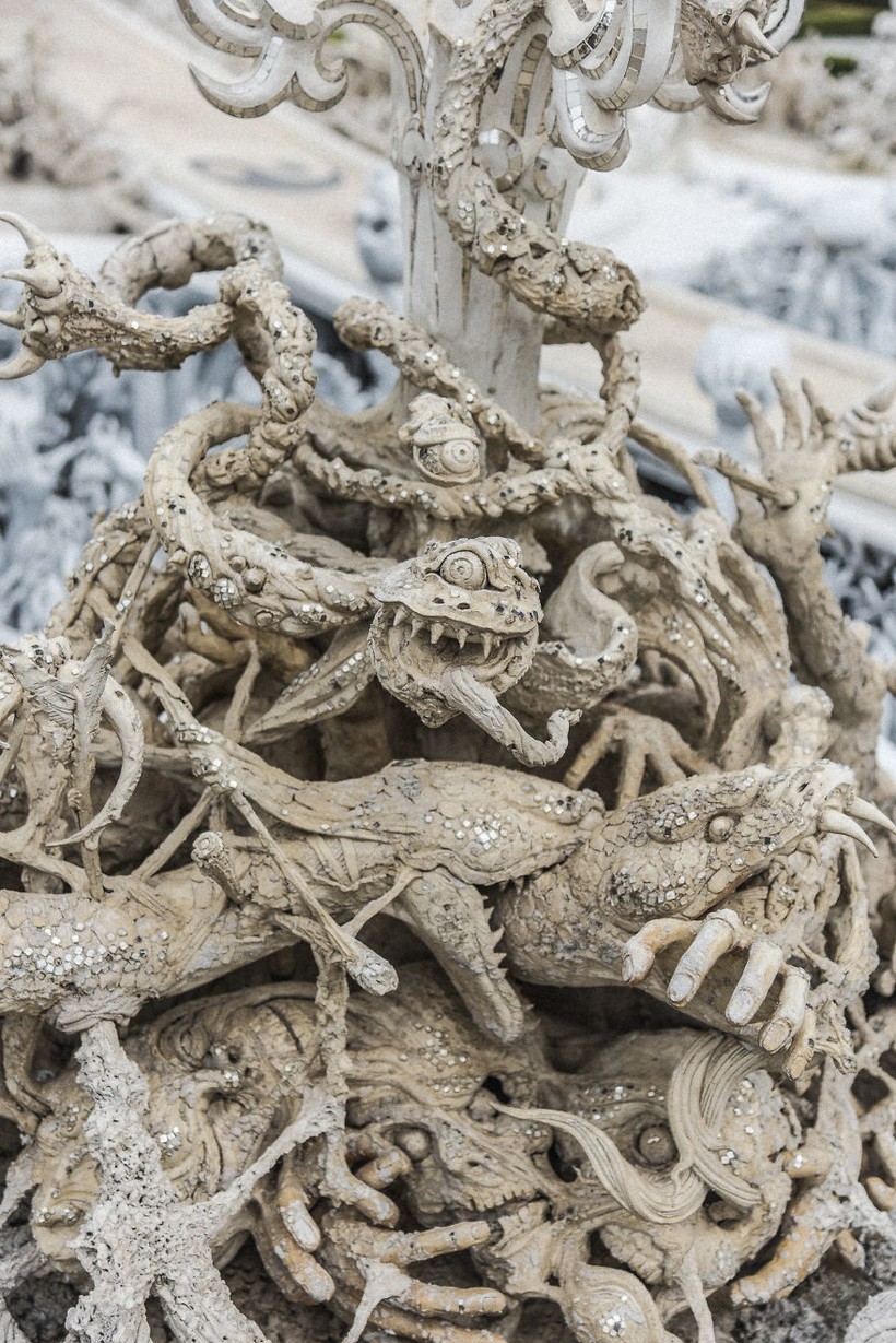 Сначала, на пути ко входу вы оказываетесь среди бесчисленного количества изваяний человеческих рук, будто тянущихся и норовящих что-нибудь схватить. Это ад — бесконечная яма желаний и человеческой похоти, согласно философии буддизма. Как только вы пересечете мост над «адом», вас встретят статуи небесных стражей. Теперь пути назад нет, только вперед. И в самом деле, если бы вы попытались вернуться, охранник, работающий в храме, начал бы кричать на вас. Символизм пересечения моста от «ада» к «небу» означает буддийский путь к просветлению.