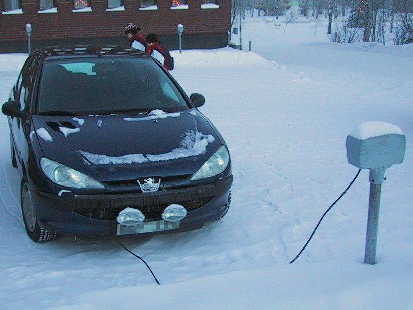 В Финляндии машины могут подогреваться от специальных розеток, которые есть на уличных парковках.