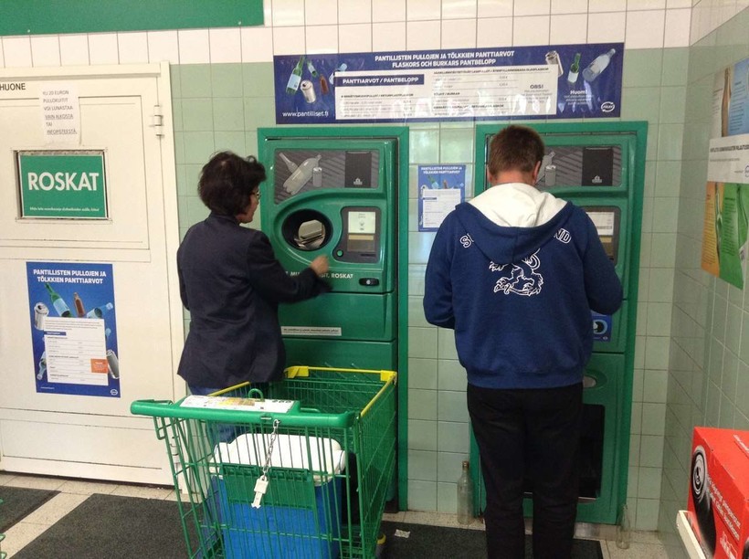 Повсюду можно встретить автоматы по сдаче банок и бутылок.