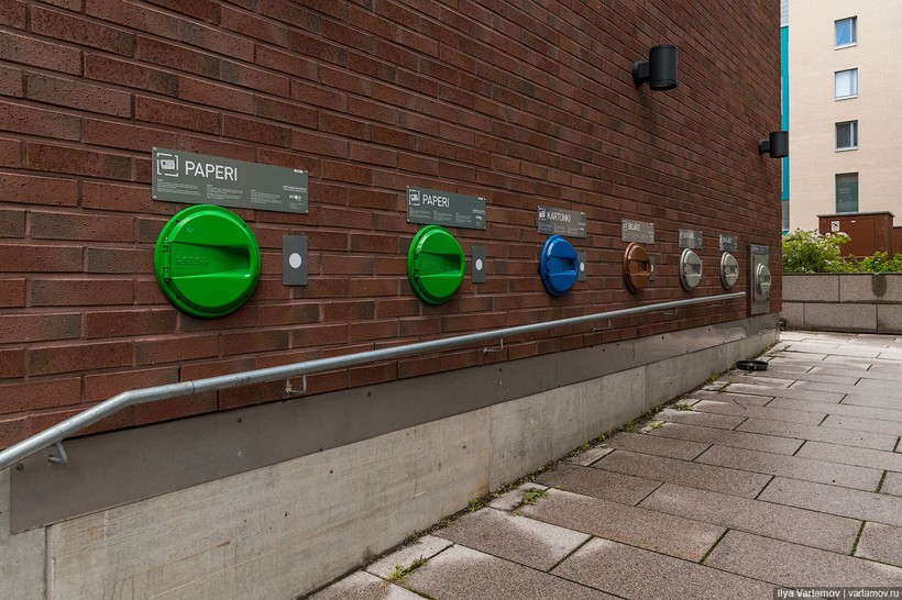 В Хельсинки создана подземная вакуумная система сборки мусора. Только представьте, никого запаха от контейнеров: отсортированный жителями мусор сразу всасывается в трубу и доставляется на центральную станцию со скоростью 70 км/ч.