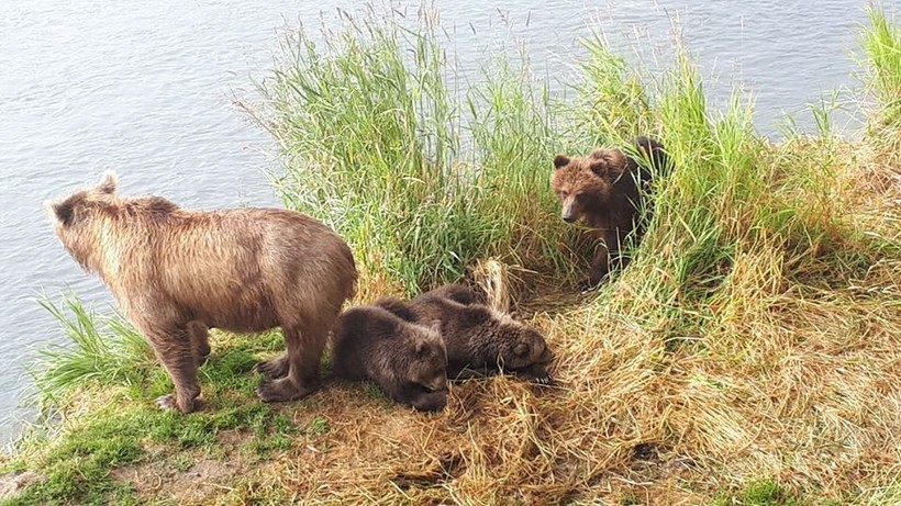 Сотрудники заповедника давно наблюдали за медведицей Аглаей, у нее два детеныша первого года жизни. Некоторое время назад в их компании заметили медвежонка-двухлетку, который упорно следовал за семейством, пытался устроиться с ними на отдых и ел вместе рыбу. Что случилось с его матерью, зоологи не смогли выяснить. Аглая, на удивление, терпимо отнеслась к появлению сироты, а позже и вовсе приняла его к себе.