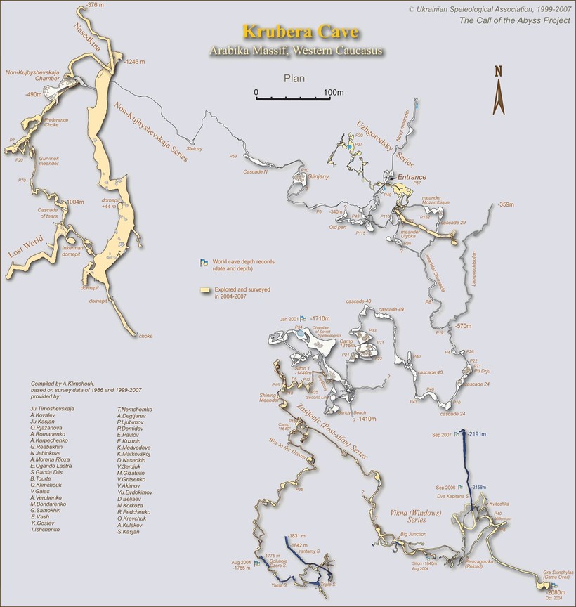 После того, как стало ясно, что пещера Крубера является выдающейся по своим характеристикам, ей заинтересовались исследователи не только с просторов СНГ, но и зарубежные спелеологи. На данный момент, после исследования нескольких боковых проходов и подводных тоннелей, глубина пещеры Крубера остановилась на отметке 2 199 метров, но не исключено, что эта цифра может увеличиться.
