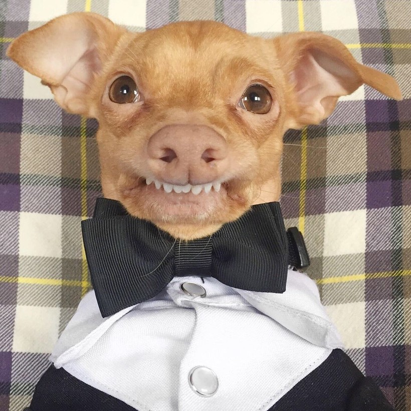 И еще один герой нашей подборки, у которого тоже небольшой дефект. У Туны с рождения нижняя челюсть слишком маленькая, а верхняя, наоборот, ярко выражена. И это нисколько не помешало собаке стать знаменитой: у Туны 1,9 миллиона подписчиков.