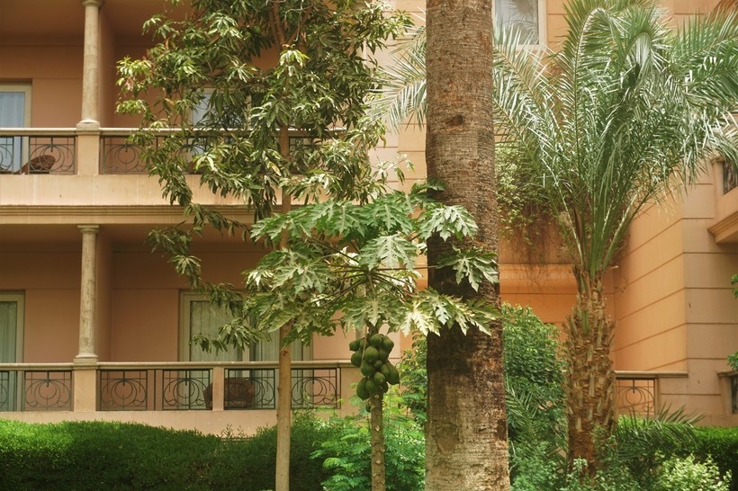 Удивительное дело, помимо традиционных фруктов, в засушливом Египте мне удалось найти плантации бананов, манго....а в парке при отеле в Луксоре росли еще и дынные деревья, более известные нам как папайя.