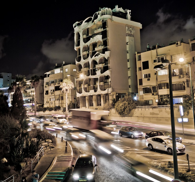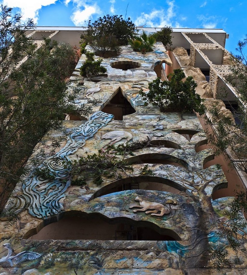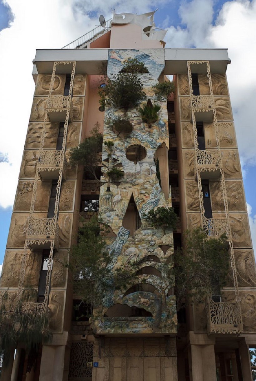 Проект этого необыкновенного дома обсуждался в городском муниципалитете на протяжении многих лет, настолько странным и спорным он казался. Его утвердили в 1982 году и построили в течение 3 последующих лет. Местные называют его Сумасшедшим домом благодаря причудливым формам и деревьям, растущим прямо из окон. Это здание является жилым домом, расположенным на улице Ха-Яркон, и неизменно привлекает внимание всех направляющихся к морю.