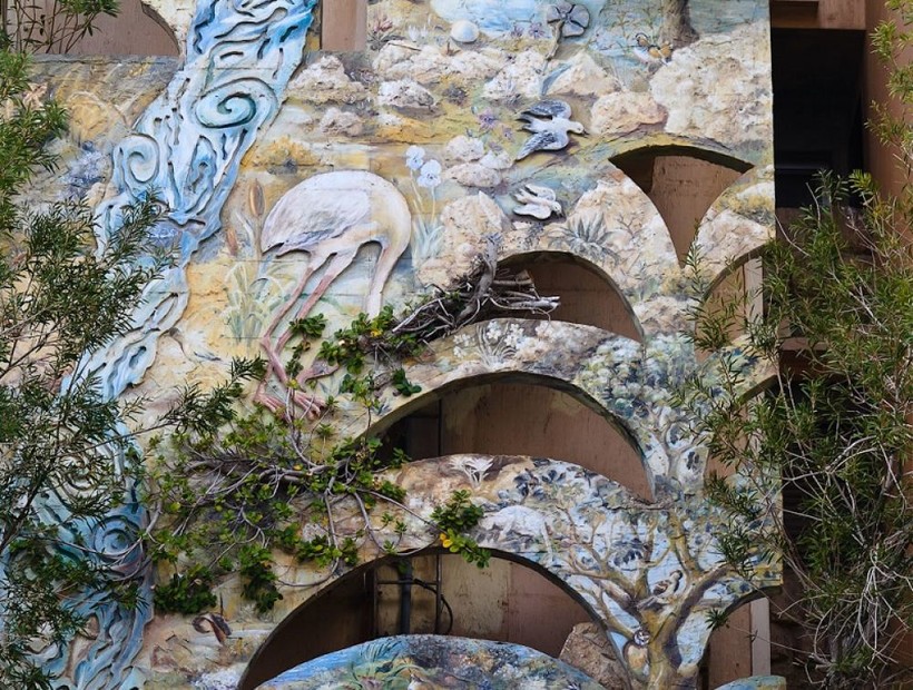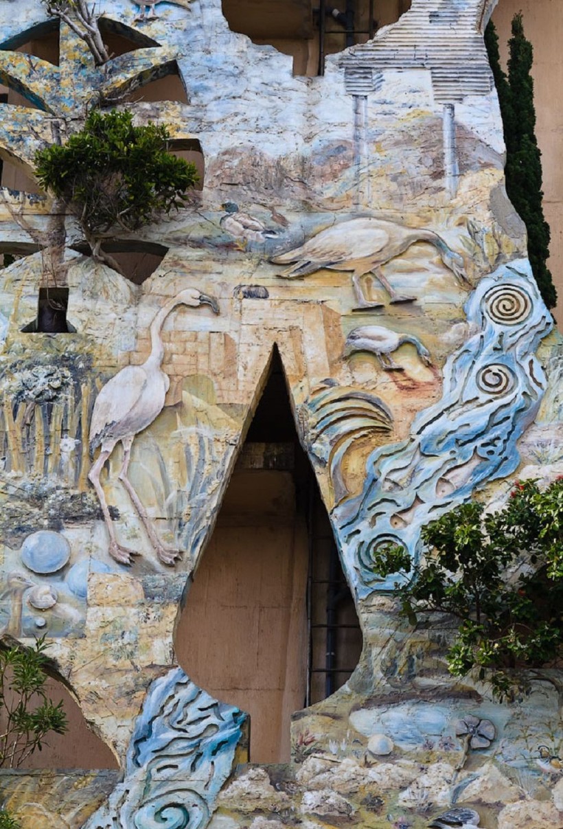 Здесь нет странных изгибов, а вместо этого можно полюбоваться морскими картинами, сделанными из песка и ракушек. Дизайн символизирует границу между городом и морем.