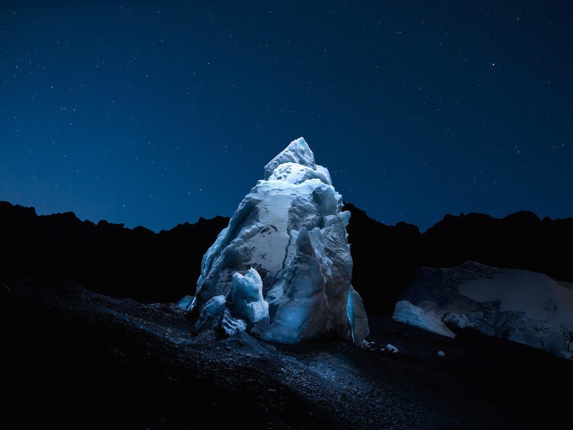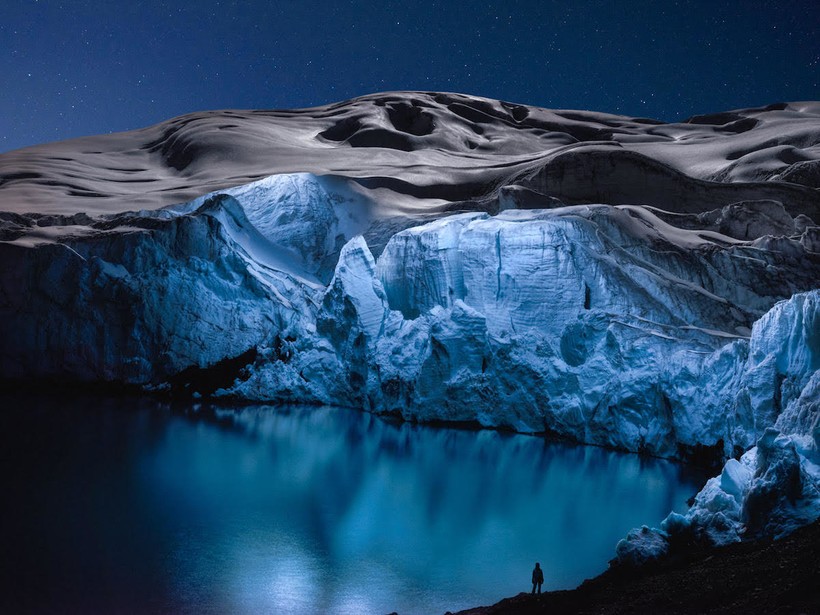 Так родилась бесподобная серия снимков под названием Lux Noctis. В нее вошли вот эти потрясающие фото Пасторури — одного из немногих ледников, оставшихся в тропической части Южной Америки. Фотографии были сделаны ночью и продемонстрировали синий лед ледника, окруженного извилистой черной скалой, на фоне ясного ночного неба. Картина, от которой перехватывает дыхание!