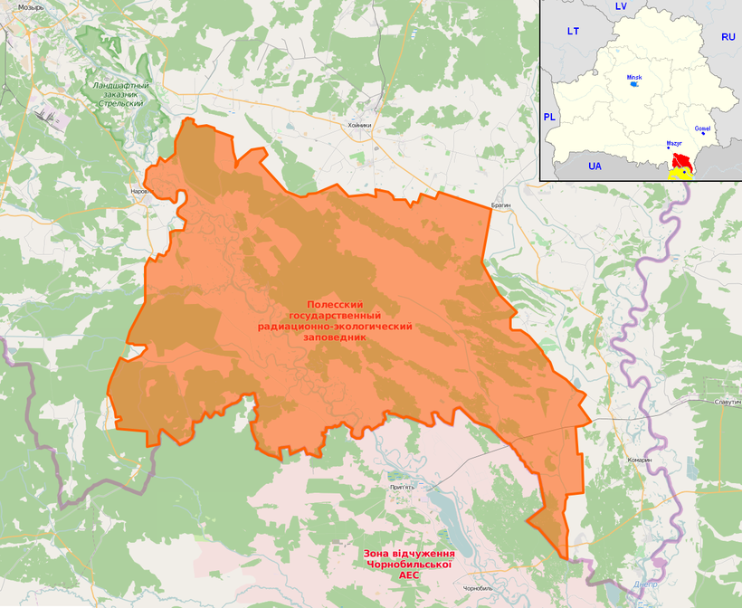 На юго-востоке Беларуси расположен Полесский государственный радиационно-экологический заповедник, который был основан летом 1988 года. В состав заповедника вошли наиболее пострадавшие от радиации районы республики, из которых были переселены более 20 000 человек. Изначально этот заповедник был создан для ограничения доступа на зараженную территорию и для проведения радиологических научно-исследовательских работ. Но впоследствии, когда стало ясно, что животный мир с энтузиазмом воспринял отсутствие человека, в работу заповедника были включены и наблюдения за животными.