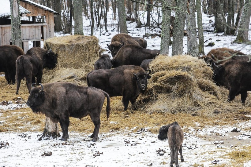 Гордость Полесского заповедника — это зубры, которые специально были интродуцированы сюда человеком. Когда-то зубры обитали во всей зоне широколиственных лесов Европы, но неконтролируемая охота привела к их исчезновению. И вот здесь, в условиях полного отсутствия человека, зубры наконец-то почувствовали себя в безопасности.
