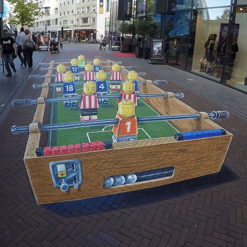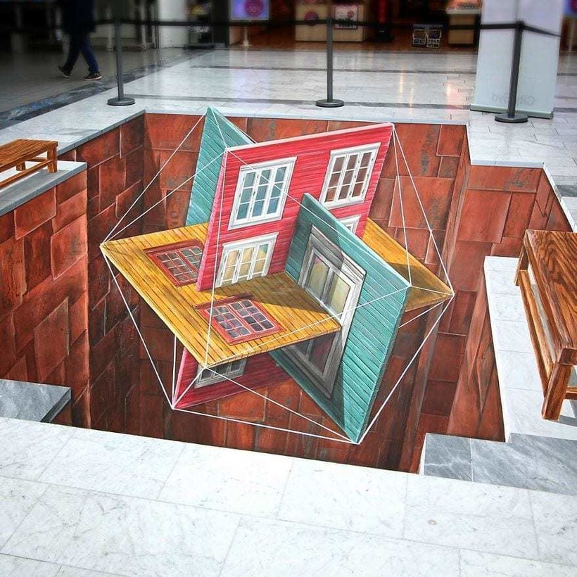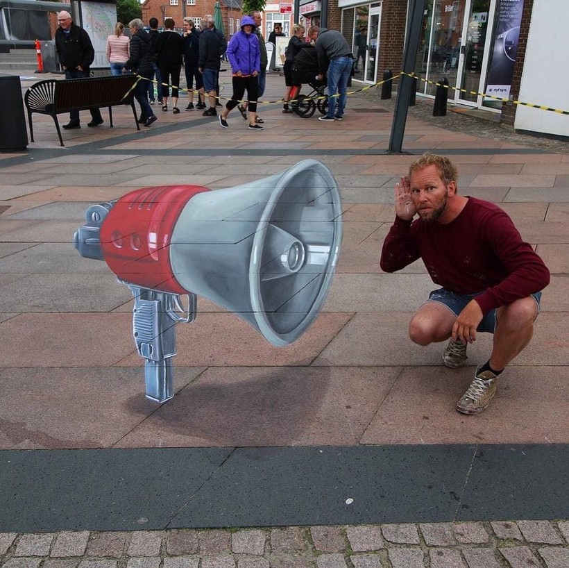 Голландский художник Леон Кир создает невероятные картины на асфальте. Они выглядят настолько реалистично, что хочется остановиться возле каждой его работы и потрогать ее руками. На самом деле многие прохожие так и делают, ведь со стороны 3D-изображение выглядит как препятствие, которое нужно обойти, но на деле это всего лишь рисунок!