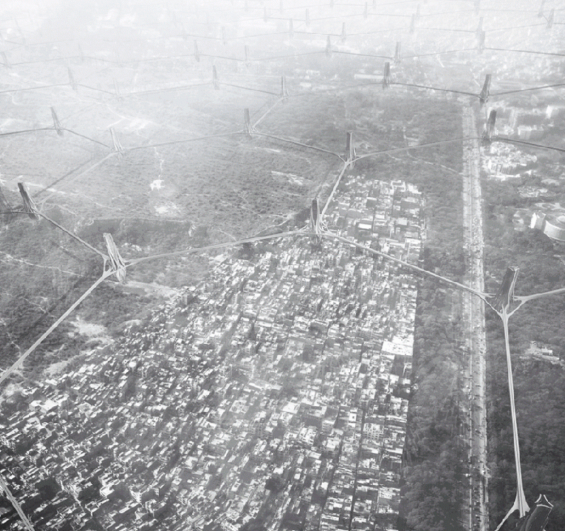 По замыслу инженеров, в городе необходимо установить сеть башен, высотой 100 метров, которые бы выполняли роль фильтров-очистителей воздуха. Предполагается, что каждая башня будет очищать воздух в радиусе 2-х километров, а в течение дня фильтры будут пропускать через себя около 3,2 миллиона кубических метров воздуха. Башни будут соединены между собой мостами, на которых разместят солнечные батареи и водородные элементы питания, за счет них и будет функционировать башня. В проекте сеть башен напоминает структуру сот.