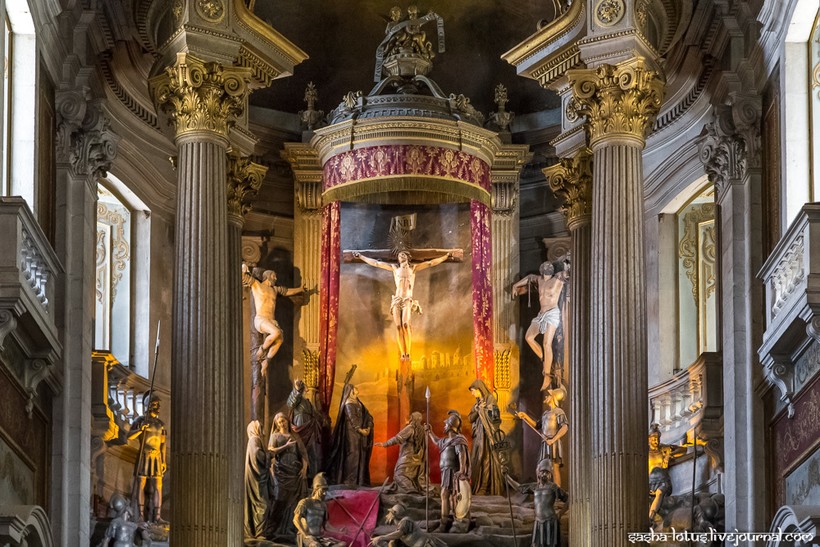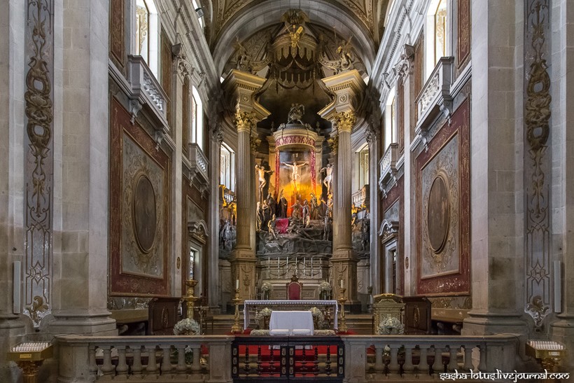 Изображение распятого Христа архиепископ Браги заказывал в Италии. У ног Иисуса — Иоанн Евангелист, Мария Магдалина, Богоматерь, центурион и восемь римских солдат.