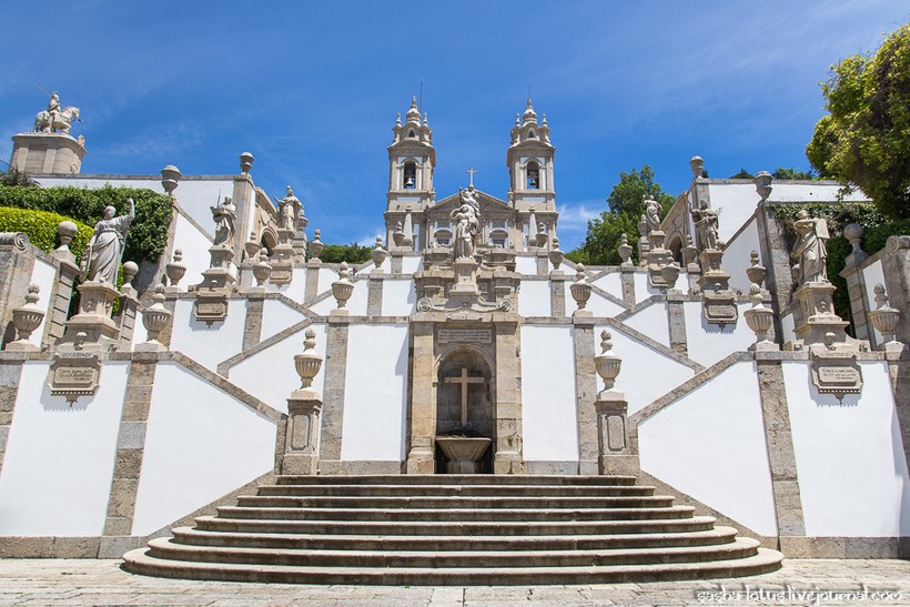 Знаете, когда видишь фотографию в сети и понимаешь, что обязательно должен увидеть это своими глазами? Санктуарий Бон-Жезуш-ду-Монте, главный центр паломничества в Португалии рядом с Брагой, со своей богатой символикой и каскадной, зигзагообразной барочной лестницей, олицетворяющей тернистый путь к Богу — одно из таких мест.