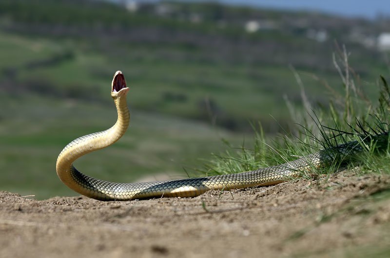 Но полоз не будет ждать, когда его сфотографируют. Скорее всего, он будет пытаться уползти. Если встать у змеи на пути, она нападет.