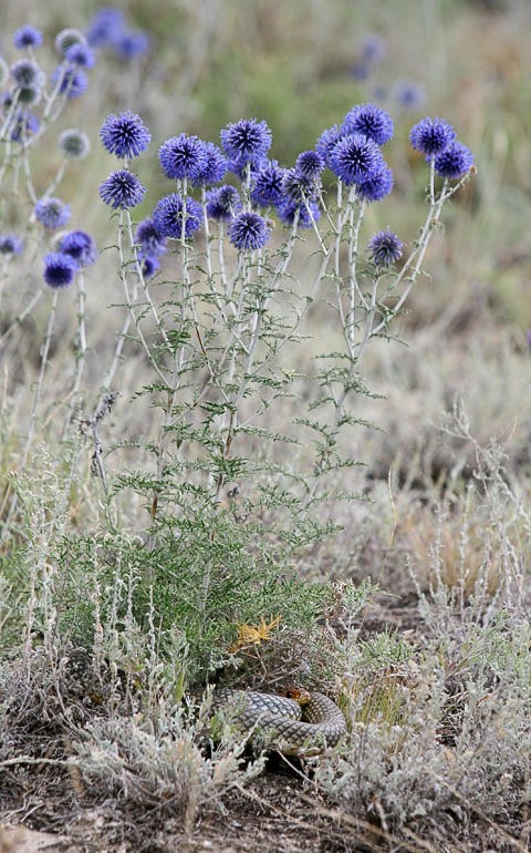 Полоз укрылся в кусте мордовника.