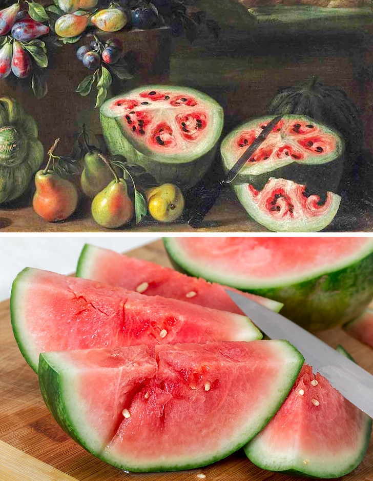 Если взглянуть на картину Джованни Станки 17 века, то можно обнаружить, что изображенный на ней арбуз выглядит совершенно иначе, чем сейчас. Оказывается, селекционерам пришлось потрудиться, чтобы избавиться от многочисленных несъедобных прожилок.