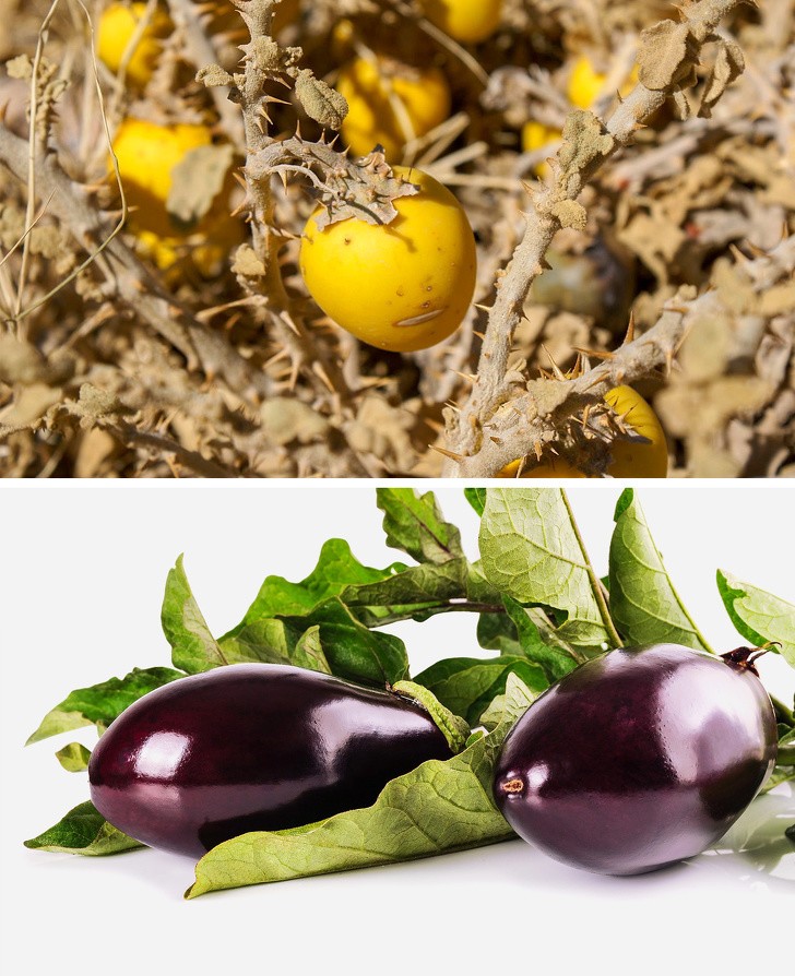 Кто бы мог подумать, что изначально баклажаны были желтыми и колючими.