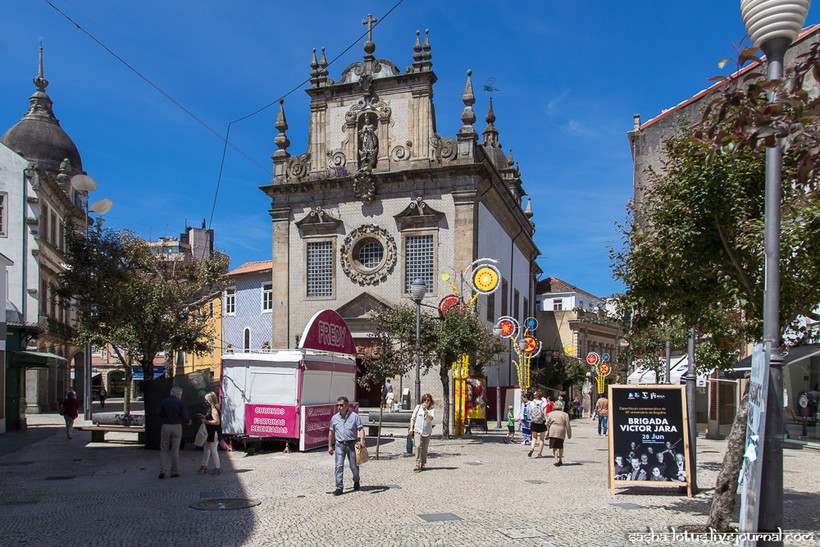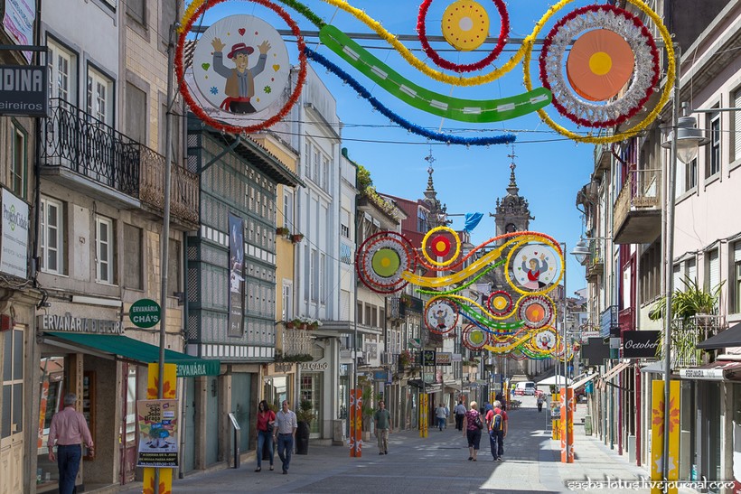 «Брага — город контрастов, где богатое историческое и духовное наследие соседствует с кипучей энергией студенчества. Концентрация молодых людей здесь самая высокая в Португалии благодаря одному из крупнейших университетов страны. Помимо трех десятков церквей и базилик, принесших Браге неофициальное прозвище "португальский Рим", город способен очаровать путешественника лабиринтом узких улочек старого города, пышными барочными зданиями и уютными живописными парками, вкуснейшими блюдами местной кухни и фантастическим шопингом, а исследовать все легенды и потаенные уголки Браги в непринужденной обстановке — сущее удовольствие». Примерно с такой термоядерной экспрессией осыпают дифирамбами третий крупный город Португалии туристические порталы и путеводители. Нам, выбравшимся на денек из Порту, предстали немноголюдные и украшенные в преддверии очередного надвигавшегося католического праздника улицы с вальяжно прогуливавшимися пенсионерами, а хваленым молодежным духом и не пахло. Сказалось ли воскресение, знойная жара или тот факт, что маршрут прогулки почти не вылезал за контуры Старого города?