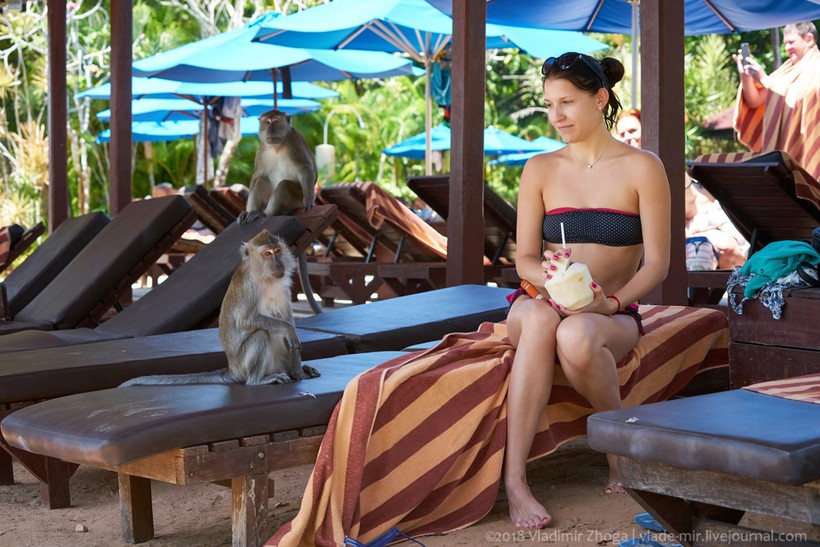 Сам остров покрыт густыми тропическими зарослями, и это по сути большой национальный парк, в котором обитает огромное количество живности, и с некоторыми из них вы непременно встретитесь. Например, на пляжах нужно внимательно следить за сумками, так как обитающие здесь обезьяны любят порыться в оставленных вещах в поиске чего-нибудь вкусного. И даже в дорогих отелях с этими попрошайками ничего не могут сделать.