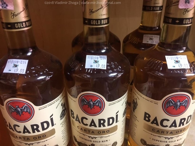 Кстати, о напитках! Остров Лангкави — это «беспошлинная зона», этакий «дьюти-фри» остров. Здесь куча магазинов, в которых продают алкоголь, и таких низких цен я не видел нигде! Правда, есть одно НО. Продается все строго по паспорту, причем в базу данных заносится количество купленного алкоголя, а оно строго лимитировано. Во время своего пребывания вы можете купить до 5 литров крепкого алкоголя, 3-х упаковок пива и 3-х блоков сигарет, а вывозить с острова можно вообще не более 1 литра/бутылки на человека. Я не знаю почему, но цены на Лангкави намного ниже, чем скажем в том-же дьюти-фри в Куала-Лумпуре (цены в ринггтах, для примера 49 ринггитов = 12$).