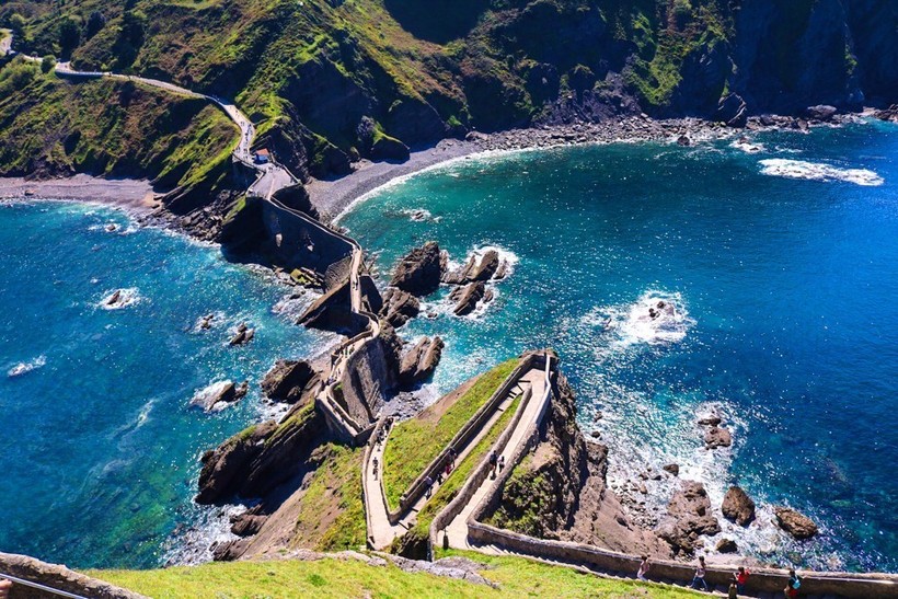 Узкая лестница на острове Гастелугаче, Страна Басков. Она ведет к средневековой церкви и соединяет остров с материком.