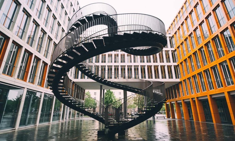 Бесконечная лестница в Мюнхене, которая оформлена в непрерывную петлю.