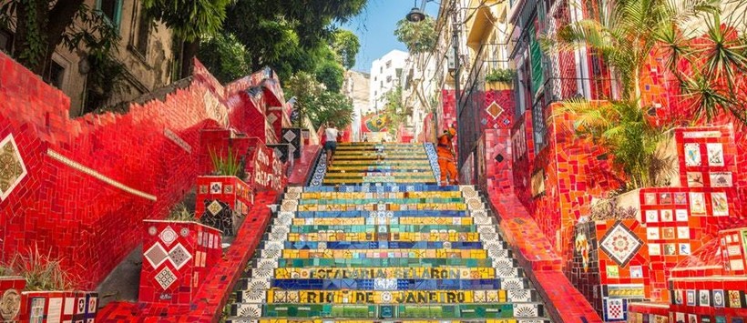 Лестница Селарона, Рио-де-Жанейро. Чилийский художник Хорхе Селарон поселился в маленькой квартирке рядом с полуразрушенной лестницей в 1990 году и решил сделать из нее произведение искусства.