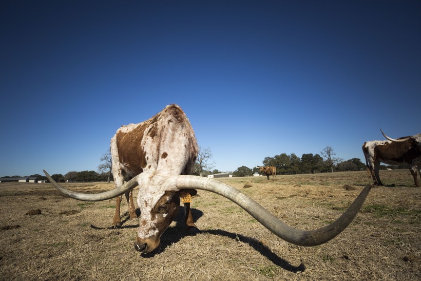 Результаты скрещивания различных пород животных могут быть самые неожиданные. Например, на американском континенте существует порода крупного рогатого скота, представители которой обладают невероятно длинными рогами. Их размах достигает 2 метров, но даже и 2,5 метра — это не предел. Сегодня мы расскажем о техасском лонгхорне — породе быков с очень длинными рогами и довольно агрессивным характером.