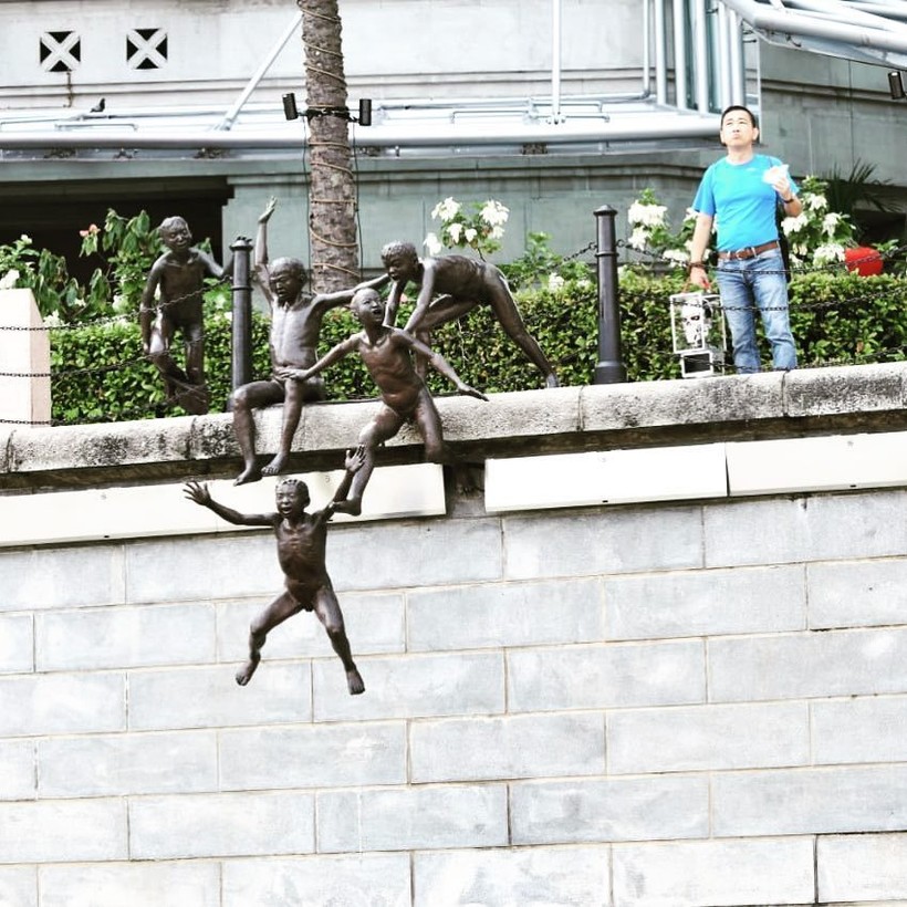 Скульптура «Первое поколение»: дети мигрантов развлекаются прыжками в воду, Сингапур