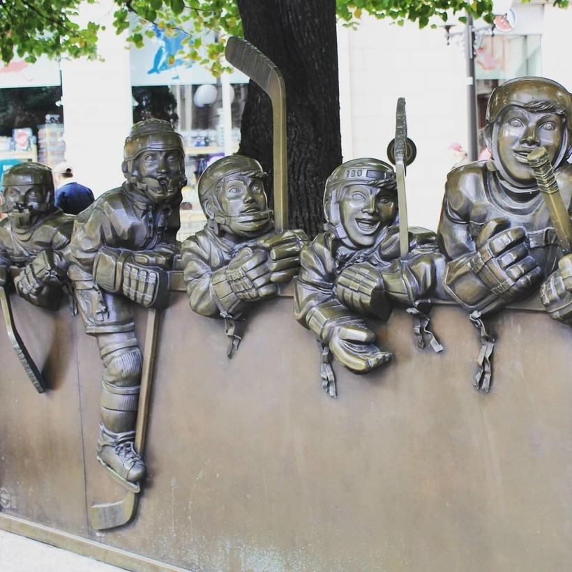 Скульптура в виде детской хоккейной команды. Расположена у входа в Зал хоккейной славы, Торонто, Канада
