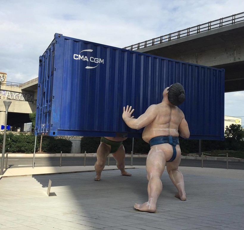 Скульптура перед штаб-квартирой компании CMA-CGM в Старом порту Марселя