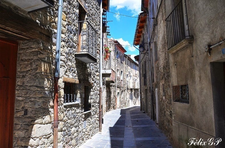 Кастельфольит-де-ла-Рока разместилась на узкой базальтовой скале, которая обрывается на 50 метров в пропасть. Протянулась скала на десятки метров, и проходит она как раз между двумя реками. Деревушка сама по себе крохотная, одна из самых маленьких в Испании, и занимает площадь меньше одного квадратного километра, но каждый ее сантиметр невероятно красив. Дома и церковь словно выросли из скалы, и они так близко стоят к краю обрыва, что кажется, вот-вот упадут.