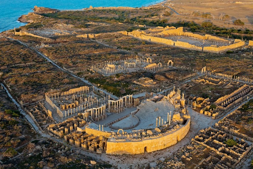Еще один древнеримский город, расположенный на территории Ливии — Лептис-Магна. Здесь на большой площади, прямо на побережье Средиземного моря находится множество руин, вид которых с высоты очень впечатляет. В Лептис-Магне хорошо сохранилось здание театра, амфитеатра, а также несколько арок, центральная площадь, рыночная площадь и руины других построек. Археологи обнаружили здесь несколько хорошо сохранившихся мозаик.