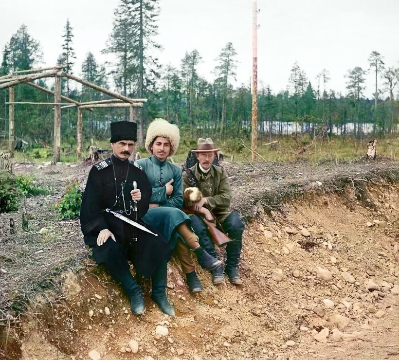 Охрана Мурманской железной дороги и Сергей Прокудин-Горский (справа), 1916 год.